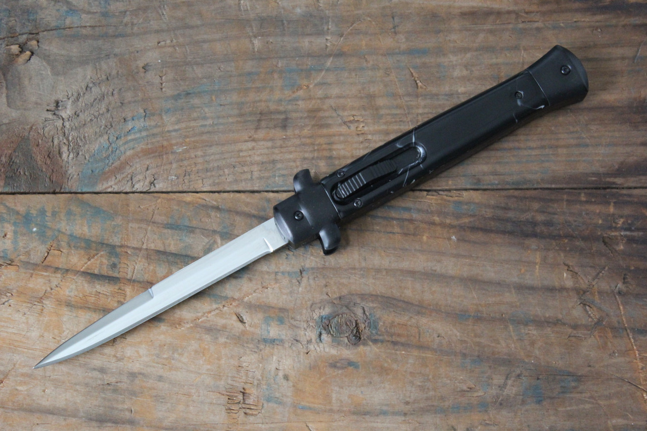 Italian 11 Black Marble Stiletto Otf Automatic Knife W Black Hardware Italian Knives Automatic Knives Black Marble